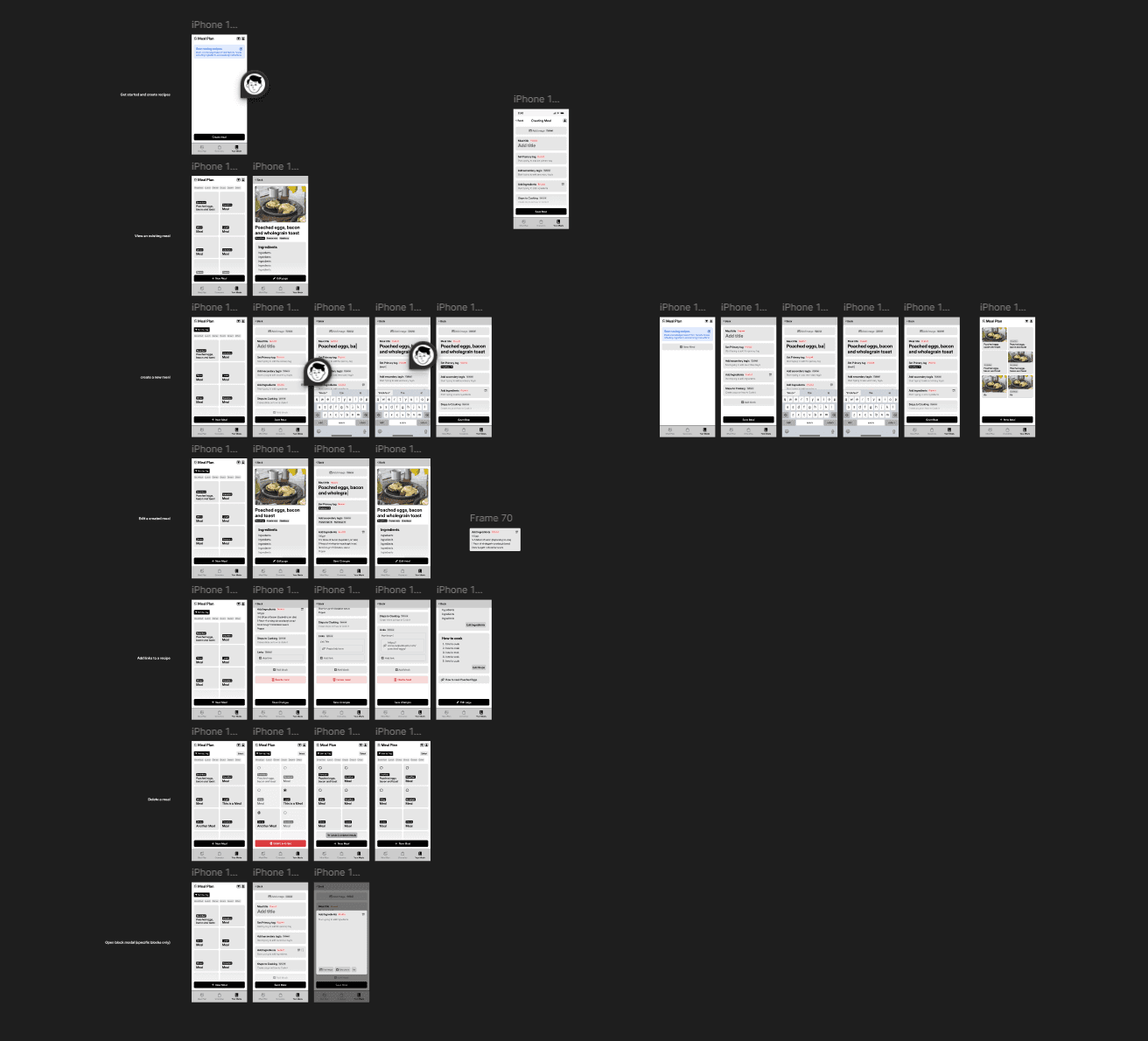 Up until this point the app was in my head, here I laid everything out, recognized flaws, some confusion, and ultimately iteration and ideation continued.