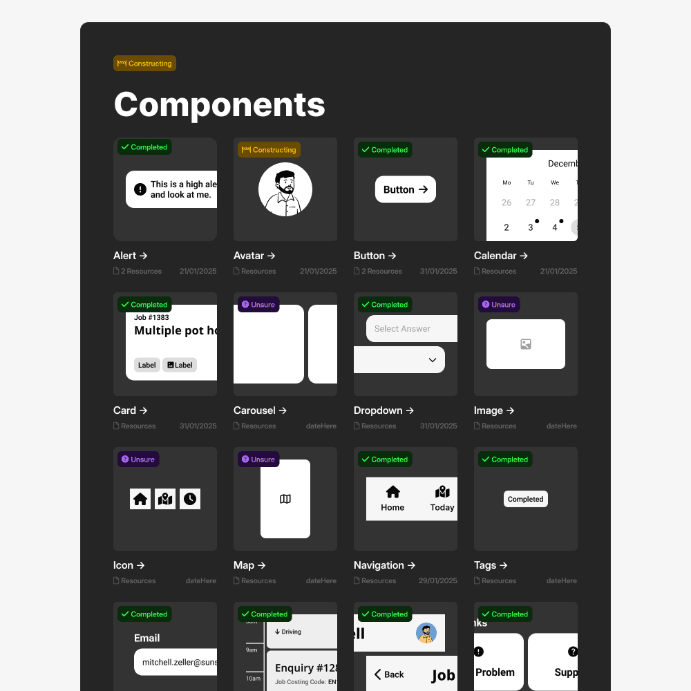 Built a library of reusable components: buttons, form inputs, cards, bottom sheets, modals, and navigation elements. Each component included variants for different states (default, hover, disabled, error).