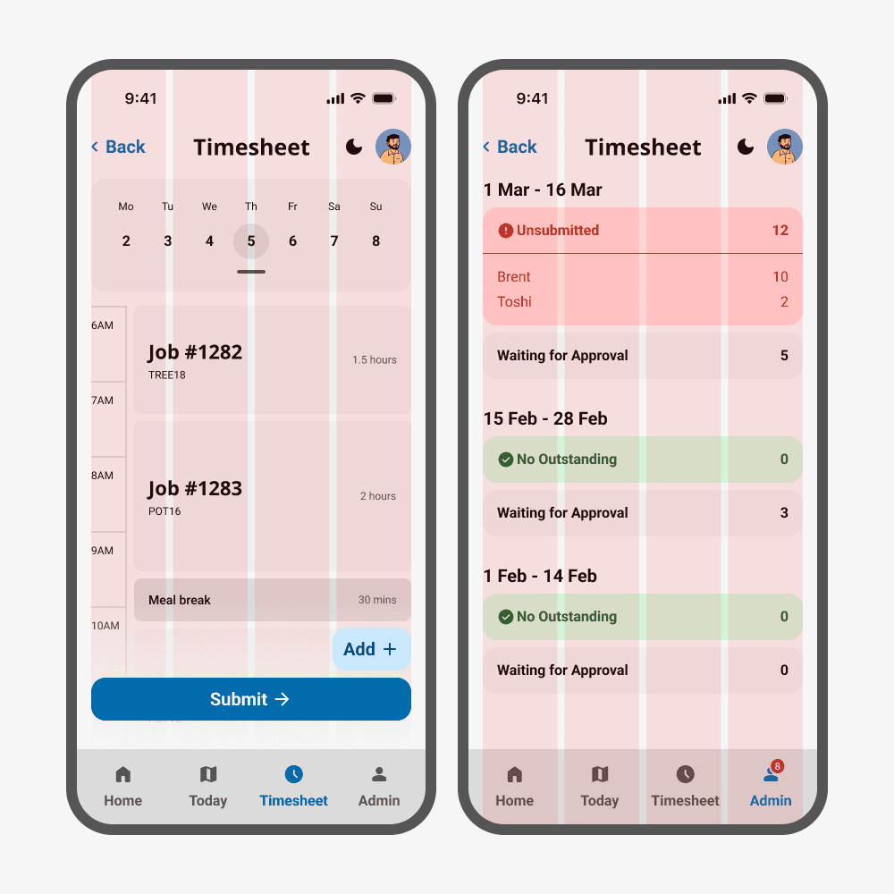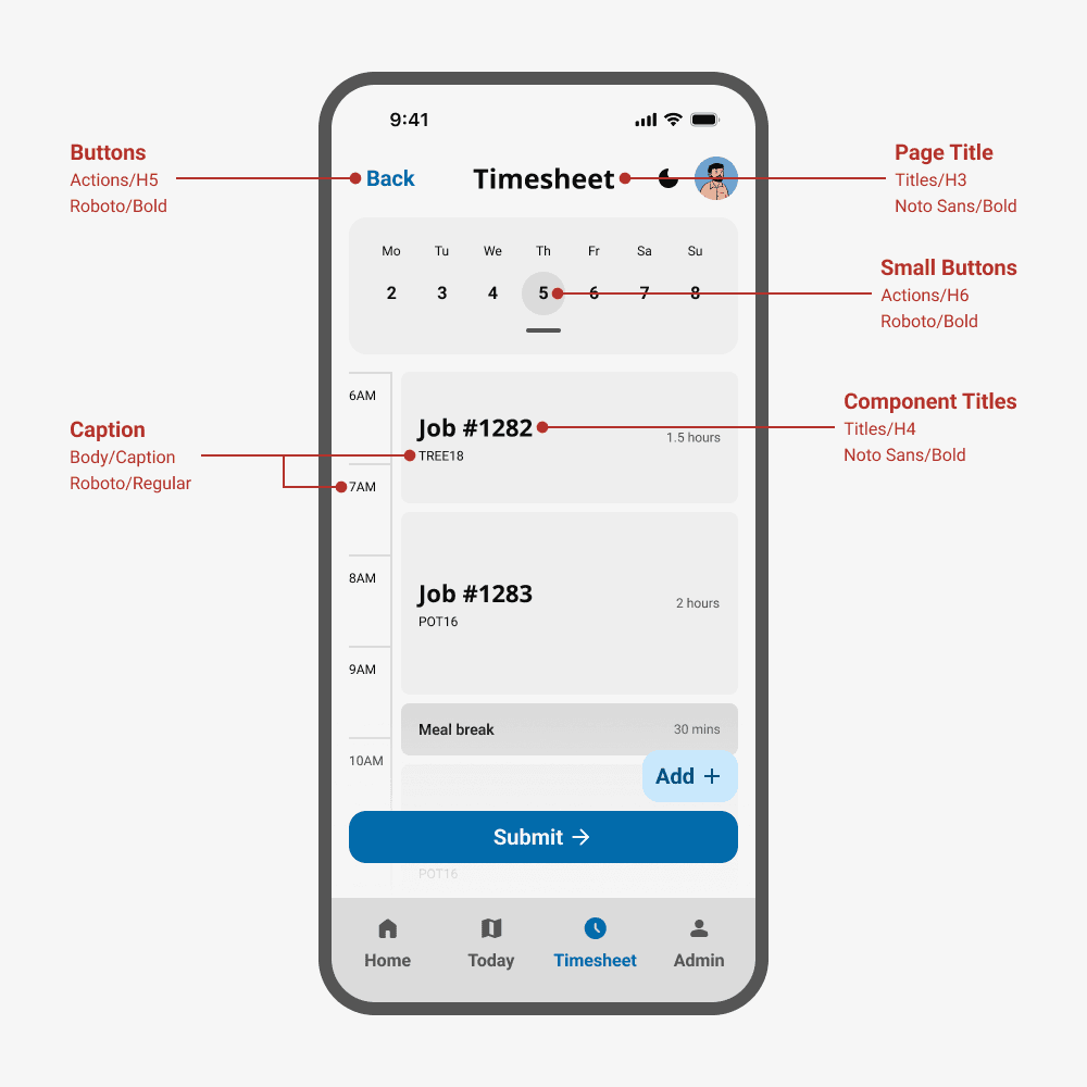 I designed a timesheet app for 1,000+ Council field workers while building the organization's first digital design system.